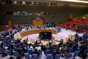 (250917) -- NUEVA YORK, 17 septiembre, 2025 (Xinhua) -- Representantes votan un proyecto de resolución durante una reunión del Consejo de Seguridad, en la sede de la ONU, en Nueva York, el 17 de septiembre de 2025. El Consejo de Seguridad de las Naciones Unidas adoptó el miércoles una resolución sobre el regreso de las personas desaparecidas de Kuwait y de terceros países como resultado de la invasión iraquí de 1990. (Xinhua/Loey Felipe/UN Photo) (jg) (da) (ce)