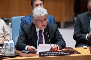 (250811) -- NACIONES UNIDAS, 11 agosto, 2025 (Xinhua) -- Imagen del 10 de agosto de 2025 de Miroslav Jenca, secretario general adjunto de la ONU para Europa, Asia Central y las Américas, hablando en una reunión del Consejo de Seguridad, en la sede de la ONU, en Nueva York. Jenca advirtió el domingo que la decisión de Israel de ocupar la Ciudad de Gaza pueda desatar otra calamidad en Gaza. (Xinhua/Evan Schneider/UN Photo) (rtg) (ah) (ce)