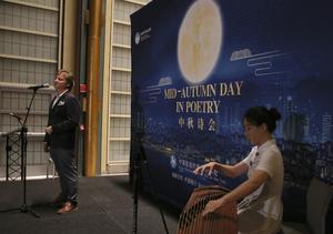 (251014) -- NACIONES UNIDAS, 14 octubre de 2025 (Xinhua) -- Imagen del 13 de octubre de 2025 de Jeff Crosby, un artista estadounidense radicado desde hace mucho tiempo en la provincia china de Yunnan, realizando una presentación en mandarín de la Melodía del Agua en la sede de la Organización de las Naciones Unidas (ONU), en Nueva York. La celebración del "Día del Medio Otoño en Poesía" de 2025 iluminó la sede de la ONU con el espíritu de reencuentro, armonía e intercambio cultural el lunes por la noche. (Xinhua/Zhang Fengguo) (oa) (ah) (vf)