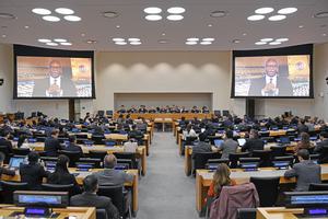 (250610) -- NACIONES UNIDAS, 10 junio, 2025 (Xinhua) -- Imagen del 9 de junio de 2025 del presidente de la Asamblea General de la ONU, Philemon Yang, pronunciando un mensaje de video durante un diálogo temático para conmemorar el primer aniversario del Día Internacional para el Diálogo entre Civilizaciones, en la sede de la ONU, en Nueva York. Propuesta por China y auspiciada conjuntamente por más de 80 países, una resolución adoptada por la Asamblea General de la ONU el año pasado designa al 10 de junio como el Día Internacional para el Diálogo entre Civilizaciones. (Xinhua/Li Rui) (jg) (ra) (ce)