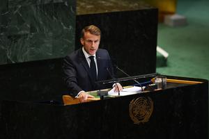 (250922) -- NACIONES UNIDAS, 22 septiembre, 2025 (Xinhua) -- El presidente francés, Emmanuel Macron, habla durante la Conferencia Internacional de Alto Nivel para la Solución Pacífica de la Cuestión de Palestina y la Implementación de la Solución de dos Estados, en la sede de la Organización de las Naciones Unidas (ONU), en Nueva York, el 22 de septiembre de 2025. Macron dijo el lunes en una reunión de la ONU sobre la solución de dos Estados que su país reconoce al Estado de Palestina, con lo que se une a la mayoría de los demás Estados miembros de la ONU que ya lo han hecho. (Xinhua/Li Rui) (rtg) (ah) (ce)