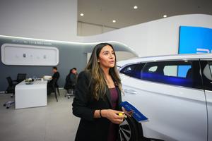 (251002) — BOGOTA, 2 octubre, 2025 (Xinhua) — Mujeres observan especies de flores durante la feria internacional Proflora 2025, llevada a cabo en el recinto ferial Corferias, en Bogotá, capital…