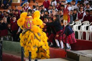 (260202) — LIMA, 2 febrero, 2026 (Xinhua) — Imagen del 1 de febrero de 2026 de personas observando una presentación de la danza del león durante la celebración del Día…