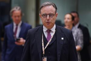 (250406) — QINGDAO, 6 abril, 2025 (Xinhua) — Oficiales de inmigración pasan frente al Adora Magic City en la Terminal Internacional de Cruceros de Qingdao, en Qingdao, en la provincia…