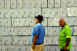 (250227) — BEIJING, 27 febrero, 2025 (Xinhua) — Un periodista (i) solicita su acreditación de prensa en un centro de prensa para las «dos sesiones» anuales de China, en Beijing,…