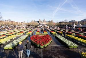 (260118) -- AMASTERDAM, 18 enero, 2026 (Xinhua) -- Imagen del 17 de enero de 2026 de un enorme jardín con más de 200.000 tulipanes en la Plaza de los Museos, en Amsterdam, Países Bajos. Los holandeses celebraron el Día Nacional del Tulipán, que tradicionalmente se celebra el tercer sábado del año. (Xinhua/Sylvia Lederer) (oa) (da)
