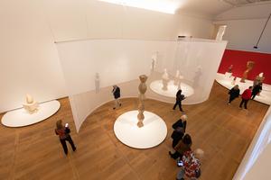 (250919) — AMSTERDAM, 19 septiembre, 2025 (Xinhua) — Imagen del 18 de septiembre de 2025 de visitantes observando las esculturas de Constantin Brancusi durante la vista previa a los medios de comunicación de la exposición «Brancusi: El Nacimiento de la Escultura Moderna» en el Museo H’ART, en Amsterdam, Países Bajos. La exposición, que se inaugurará el sábado, muestra las obras del escultor rumano Constantin Brancusi (1876-1957), presentando más de 30 obras maestras cedidas por el Centro Pompidou de París. La exposición durará hasta el 18 de enero de 2026. (Xinhua/Sylvia Lederer) (oa) (ra) (vf)