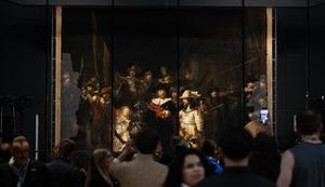 (251103) -- AMSTERDAM, 3 noviembre, 2025 (Xinhua) -- Imagen del 1 de noviembre de 2025 de visitantes observando el cuadro "La ronda de noche" durante el evento Noche de Museos, en Amsterdam, Países Bajos. (Xinhua/Sylvia Lederer) (oa) (ah) (ce)
