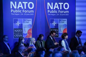 (250624) -- LA HAYA, 24 junio, 2025 (Xinhua) -- Imagen del 24 de junio de 2025 del Foro Público de la Organización del Tratado del Atlántico Norte (OTAN) llevado a cabo durante la cumbre de la OTAN, en La Haya, Países Bajos. La cumbre anual de la OTAN comenzó el martes en La Haya bajo estrictas medidas de seguridad, y se espera que los líderes de los estados miembros aprueben una propuesta de objetivo de gasto en defensa del 5 por ciento del PIB. (Xinhua/Peng Ziyang) (oa) (ra) (vf)