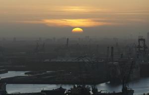 (251229) -- ROTERDAM, 29 diciembre, 2025 (Xinhua) -- Imagen tomada desde el Euromast de Róterdam el 28 de diciembre de 2025 del atardecer, en Róterdam, Países Bajos. (Xinhua/Shao Haijun) (ah) (oa) (vf)
