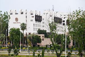 (260411) -- ISLAMABAD, 11 abril, 2026 (Xinhua) -- Imagen del 11 de abril de 2026 del exterior del Hotel Serena para las conversaciones entre Estados Unidos e Irán, en Islamabad, Pakistán. Las conversaciones entre Estados Unidos e Irán para poner fin a las hostilidades comenzaron el sábado en Islamabad, capital de Pakistán, informaron los medios locales. (Xinhua/Wang Shen) (rtg) (da)