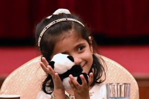 (251009) -- ISLAMABAD, 9 octubre, 2025 (Xinhua) -- Imagen del 7 de octubre de 2025 de una niña vista durante un evento para celebrar el Festival del Medio Otoño en la Embajada de China en Pakistán. Niños paquistaníes que se recuperan de cardiopatías congénitas y sus padres fueron invitados a la Embajada de China en Pakistán para celebrar el Festival del Medio Otoño. (Xinhua/Ahmad Kamal) (jg) (ah) (vf)