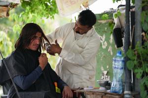 (260418) -- ISLAMABAD, 18 abril, 2026 (Xinhua) -- Imagen del 17 de abril de 2026 de un hombre recibiendo un corte de cabello, en Islamabad, Pakistán. (Xinhua/Chen Zeguo) (oa) (da)