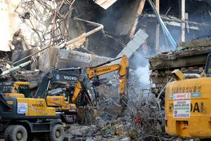 (260120) -- KARACHI, 20 enero, 2026 (Xinhua) -- Rescatistas utilizan maquinaria pesada para retirar los escombros en el sitio de un incendio en un centro comercial, en la ciudad portuaria de Karachi, al sur de Pakistán, el 20 de enero de 2026. El número de muertos por un gran incendio en un edificio comercial de varios pisos en la ciudad portuaria de Karachi, en el sur de Pakistán, ascendió a 26, mientras que 74 personas siguen desaparecidas, según informaron las autoridades el martes. (Xinhua/Str) (oa) (ah) (vf)