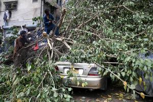 (260319) -- KARACHI, 19 marzo, 2026 (Xinhua) -- Trabajadores cortan un árbol caído sobre un vehículo después de las fuertes lluvias, en Karachi, Pakistán, el 19 de marzo de 2026. Al menos 17 personas murieron y 30 más resultaron heridas en incidentes relacionados con las lluvias en la ciudad portuaria de Karachi, en el sur de Pakistán el miércoles, dijeron funcionarios. (Xinhua/Str) (rtg) (ra) (vf)