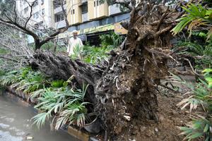 (260319) -- KARACHI, 19 marzo, 2026 (Xinhua) -- Un hombre examina un árbol caído después de las fuertes lluvias, en Karachi, Pakistán, el 19 de marzo de 2026. Al menos 17 personas murieron y 30 más resultaron heridas en incidentes relacionados con las lluvias en la ciudad portuaria de Karachi, en el sur de Pakistán el miércoles, dijeron funcionarios. (Xinhua/Str) (rtg) (ra) (vf)