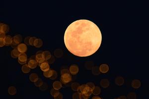 (250314) -- KARACHI, 14 marzo, 2025 (Xinhua) -- Imagen del 13 de marzo de 2025 de la Luna llena elevándose sobre la ciudad portuaria de Karachi, en el sur de Pakistán. (Xinhua/Str) (jg) (da) (vf)