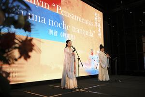 (250923) -- CIUDAD DE PANAMA, 23 septiembre, 2025 (Xinhua) -- Imagen del 22 de septiembre de 2025 de artistas de la delegación cultural proveniente de Quanzhou, ciudad costera de la provincia china de Fujian, realizando una presentación de Nanyin durante un evento celebrado por la embajada china en Panamá, en la Ciudad de Panamá, capital de Panamá. La embajada china en Panamá celebró el lunes el 76º aniversario de la fundación de la República Popular China con una actividad cultural realizada en la capital panameña. (Xinhua/Xu Yongzheng) (jg) (ra) (vf)