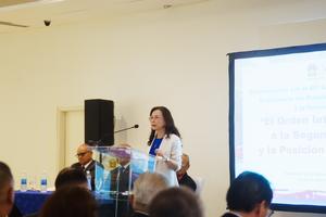 (250822) — CIUDAD DE PANAMA, 22 agosto, 2025 (Xinhua) — Imagen del 21 de agosto de 2025 de Xu Xueyuan, embajadora de China en Panamá, pronunciando un discurso durante el conversatorio «El orden internacional posterior a la Segunda Guerra Mundial y la posición peculiar de Panamá», en la Ciudad de Panamá, capital de Panamá. En conmemoración del 80° aniversario del triunfo de la Guerra de Resistencia del Pueblo Chino contra la Agresión Japonesa y la Guerra Antifascista Mundial, la Embajada de China en Panamá y el Centro de Estudios Estratégicos Asiáticos de Panamá organizaron el jueves el conversatorio «El orden internacional posterior a la Segunda Guerra Mundial y la posición peculiar de Panamá», en la capital panameña. (Xinhua/Xu Yongzheng) (rtg) (vf)
