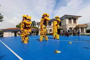 (251205) -- CIUDAD DE PANAMA, 5 diciembre, 2025 (Xinhua) -- Imagen del 3 de diciembre de 2025 de una presentación de la danza del león presentada durante el acto de premiación del Concurso de Fotografía, Vlog y Pintura 2025 "China y las Relaciones China-Panamá en Mis Ojos", en la Ciudad de Panamá, capital de Panamá. En su tercera edición, el Concurso de Fotografía, Vlog y Pintura 2025 "China y las Relaciones China-Panamá en Mis Ojos" se consolidó como una plataforma para destacar los lazos que unen a las dos naciones. (Xinhua/Daniel González) (dg) (rtg) (ra) (vf)