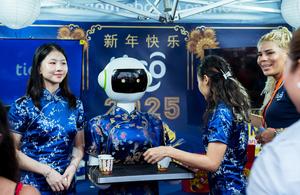 (250202) -- CIUDAD DE PANAMA, 2 febrero, 2025 (Xinhua) -- Imagen del 31 de enero de 2025 de un robot ofreciendo té chino a los visitantes durante la ceremonia de apertura de la celebración de la Fiesta de la Primavera 2025 en el Parque Recreativo y Cultural Omar Torrijos, en Ciudad de Panamá, capital de Panamá. La celebración de la Fiesta de la Primavera en Panamá sirvió para exhibir muestras de la cultura china y recordar el arraigo de la misma en el istmo, como lo recuerda el presidente de la Sociedad de Beneficencia Fayen, Tony Jiang. "La relación de los panameños con aquellos de ascendencia china es desde 1854. Esta cultura china está arraigada en todas partes del país", manifestó Jiang a Xinhua. (Xinhua/Xu Yongzheng) (rtg) (ah)