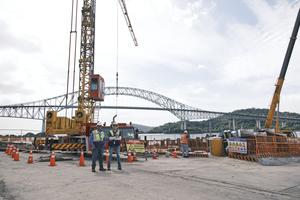 (251219) -- CIUDAD DE PANAMA, 19 diciembre, 2025 (Xinhua) -- Imagen del 18 de diciembre de 2025 del sitio de construcción del cuarto puente sobre el Canal de Panamá y el Puente de las Américas en el fondo, en la Ciudad de Panamá, capital de Panamá. El presidente de Panamá, José Raúl Mulino, destacó el avance del 30 por ciento que registran hasta el momento las obras del cuarto puente sobre el Canal de Panamá, una infraestructura clave que conectará la capital con el oeste del país. (Xinhua/Xu Yongzheng) (oa) (ra) (vf)