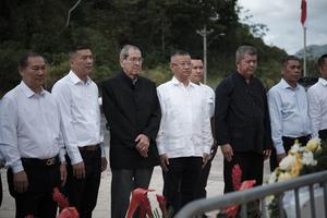 (260331) -- CIUDAD DE PANAMA, 31 marzo, 2026 (Xinhua) -- Imagen del 30 de marzo de 2026 de representantes de la comunidad china guardando un minuto de silencio durante la conmemoración del Día de la Etnia China frente al sitio donde se encontraba el monumento conmemorativo al 150º aniversario de la llegada de los primeros inmigrantes chinos a Panamá, en el mirador del Puente de las Américas, en la ribera occidental del Canal de Panamá, en la Ciudad de Panamá, capital de Panamá. Los aportes y el legado histórico de la comunidad china en Panamá, así como su integración a la sociedad, fueron destacados el lunes durante la conmemoración del Día de la Etnia China, en un acto celebrado en donde se encontraba el monumento conmemorativo al 150º aniversario de la llegada de los primeros inmigrantes chinos al país (1854-2004). (Xinhua/Xu Yongzheng) (ah) (ra) (vf)