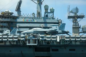 (260401) -- CIUDAD DE PANAMA, 1 abril, 2026 (Xinhua) -- Imagen del 30 de marzo del 2026 del portaaviones USS Nimitz de la Armada de Estados Unidos tras su llegada a puerto como parte del despliegue por el continente "Southern Seas 2026" junto al portaaviones USS Gridley en la Terminal de Cruceros de Amador, en la Ciudad de Panamá, capital de Panamá. (Xinhua/Daniel González) (dg) (jg) (da) (vf)