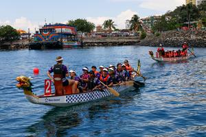 (260427) -- CIUDAD DE PANAMA, 27 abril, 2026 (Xinhua) -- Imagen del 26 de abril de 2026 de atletas participando en la décima edición Festival de Botes de Dragón, en la Ciudad de Panamá, capital de Panamá. El Festival de Botes de Dragón arribó a su décima edición como puente entre las familias de la comunidad chino-panameña a través de esa milenaria tradición, disputada el fin de semana en la Calzada Amador, en la capital de Panamá, señalaron los organizadores. (Xinhua/Daniel González) (dg) (ah) (ce)