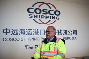 (250625) -- CHANCAY, 25 junio, 2025 (Xinhua) -- Imagen del 17 de junio de 2025 del gerente general adjunto del puerto de Chancay, Gonzalo Ríos, hablando durante una entrevista con la Agencia de Noticias Xinhua, en Chancay, Perú. La puesta en marcha del megapuerto de Chancay, ubicado a 80 kilómetros al norte de la capital de Perú, ha representado un cambio trascendental para miles de peruanos, dijo Ríos. (Xinhua/Zhao Kai) (ra) (ce)