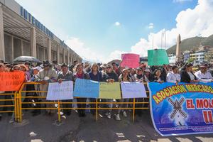 (250407) -- CUSCO, 7 abril, 2025 (Xinhua) -- Imagen proveída por la Agencia Peruana de Noticias ANDINA de personas sosteniendo pancartas durante la ceremonia especial en homenaje a los "restos simbólicos" repatriados desde España a Perú de Fernando Túpac Amaru, hijo menor del precursor de la Independencia de Perú, Túpac Amaru II, en Cusco, Perú, el 7 de abril de 2025. (Xinhua/Gobierno Regional del Cusco/ANDINA) (an) (rtg) (ah) (ce)