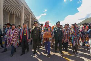 (250407) -- CUSCO, 7 abril, 2025 (Xinhua) -- Imagen proveída por la Agencia Peruana de Noticias ANDINA del alcalde provincial de Cusco, Luis Pantoja (c-frente), encabezando la ceremonia especial en homenaje a los "restos simbólicos" repatriados desde España a Perú de Fernando Túpac Amaru, hijo menor del precursor de la Independencia de Perú, Túpac Amaru II, en Cusco, Perú, el 7 de abril de 2025. (Xinhua/Gobierno Regional del Cusco/ANDINA) (an) (rtg) (ah) (ce)