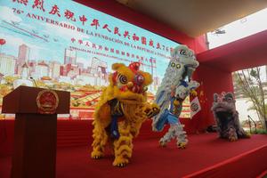 (250927) -- LIMA, 27 septiembre, 2025 (Xinhua) -- Imagen del 26 de septiembre de 2025 de personas observando la presentación de la danza del león durante un acto por el 76° aniversario de la fundación de la República Popular China, en Lima, Perú. La relación entre China y Perú ha mostrado en los últimos años un "fuerte ímpetu" con importantes avances en los ámbitos político, económico y comercial, destacaron el viernes autoridades de ambos países durante un acto realizado en Lima por el 76° aniversario de la fundación de la República Popular China. (Xinhua/Mariana Bazo) (mb) (jg) (rtg) (vf)