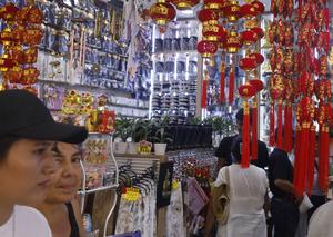 (250122) -- LIMA, 22 enero, 2025 (Xinhua) -- Personas visitan el Barrio Chino previo a la celebración del próximo Año Nuevo Chino, en Lima, Perú, el 22 de enero de 2025. Peruanos recorren con mucha fe y esperanza varios puntos de la ciudad de Lima en busca de objetos pequeños y grandes en forma de serpiente, con el fin de prepararse para lo que será la celebración del Año Nuevo Chino del calendario lunar dedicado a la "Serpiente de Madera", el próximo 29 de enero. (Xinhua/Mariana Bazo) (mb) (ah) (ra) (vf)
