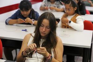 (250506) -- LIMA, 6 mayo, 2025 (Xinhua) -- Imagen del 5 de mayo de 2025 de una alumna aprendiendo a hacer nudos en el taller "El arte de los nudos chinos" organizado por el Instituto Confucio de la Pontificia Universidad Católica del Perú (PUCP), en Lima, Perú. Peruanos participaron el lunes en el taller "El arte de los nudos chinos", organizado por el Instituto Confucio de la PUCP, para impulsar un mayor acercamiento de los ciudadanos de este país andino a la cultura china. (Xinhua/Mariana Bazo) (mb) (jg) (ra) (ce)