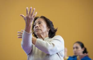 (250810) -- LIMA, 10 agosto, 2025 (Xinhua) -- Imagen del 9 de agosto de 2025 de una mujer asistiendo a un taller en el Instituto Confucio de la Pontificia Universidad Católica del Perú (PUCP), en Lima, Perú. Jóvenes y adultos peruanos disfrutaron del 7 al 9 de agosto de una serie de talleres de Wushu organizados por el Instituto Confucio de la PUCP, como parte de las celebraciones por el día internacional de esta milenaria arte marcial china. (Xinhua/Mariana Bazo) (mb) (oa) (da)