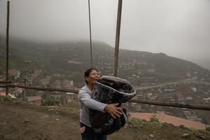 (250709) — LIMA, 9 julio, 2025 (Xinhua) — Una mujer es vista con una cobija donada por voluntarios durante la época de bajas temperaturas por el frío invierno, en la zona alta del distrito de Villa María del Triunfo, en Lima, Perú, el 9 de julio de 2025. (Xinhua/Mariana Bazo) (mb) (ah) (ra) (vf)