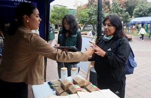 (250516) — LIMA, 16 mayo, 2025 (Xinhua) — Una trabajadora entrega productos a una mujer a cambio de material reciclado durante una actividad en la feria «Eco Trueque» previo a la celebración del Día Mundial del Reciclaje, en el distrito de Miraflores, en Lima, Perú, el 16 de mayo de 2025. Autoridades y ciudadanos peruanos realizaron el viernes en la ciudad de Lima la actividad central de la feria «Eco Trueque», con la que han buscado del 12 al 16 de mayo concientizar a la población sobre la importancia del reciclaje. (Xinhua/Mariana Bazo) (mb) (oa) (ra) (vf)