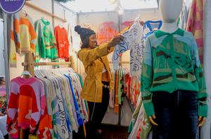 (250620) -- LIMA, 20 junio, 2025 (Xinhua) -- Una mujer visita un estand de ropa y artesanías en la Feria Artesanal Manos Peruanas, en el distrito de Barranco, en Lima, Perú, el 20 de junio de 2025. (Xinhua/Mariana Bazo) (mb) (oa) (da) (ce)