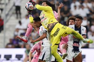 (260125) -- LIMA, 25 enero, 2026 (Xinhua) -- Imagen del 24 de enero de 2026 del guardameta Guillermo Viscarra (frente), de Alianza Lima, atajando el balón durante un partido amistoso ante Inter Miami, celebrado en el Estadio Alejandro Villanueva, en Lima, Perú. (Xinhua/Mariana Bazo) (mb) (rtg) (da)