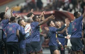 (250611) -- LIMA, 11 junio, 2025 (Xinhua) -- Imagen del 10 de junio de 2025 de los jugadores de Ecuador festejando su clasificación al término del partido ante Perú correspondiente a las Eliminatorias Sudamericanas para el Mundial de Estados Unidos, México y Canadá 2026 celebrado en el Estadio Nacional, en Lima, Perú. (Xinhua/Mariana Bazo) (mb) (jg) (da) (ce)