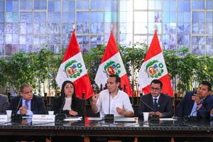 (251016) -- LIMA, 16 octubre, 2025 (Xinhua) -- Imagen proveída por la Presidencia de Perú del presidente peruano, José Jerí (c), hablando en una reunión con alcaldes representantes de la Asociación de Municipalidades Distritales del Perú y de la Red de Municipalidades Urbanas y Rurales del Perú, en Lima, Perú, el 16 de octubre de 2025. Jerí hizo el jueves un llamado al diálogo nacional tras la jornada de protesta contra la inseguridad registrada el miércoles en el centro histórico de Lima, que dejó como saldo la muerte de un hombre de 32 años. (Xinhua/Presidencia de Perú) (rtg) (ra) (vf)