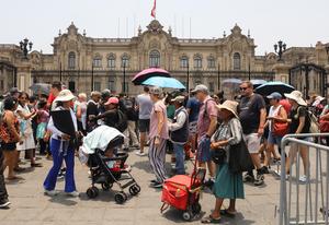 (260219) -- LIMA, 19 febrero, 2026 (Xinhua) -- Personas caminan frente al Palacio de Gobierno, en Lima, Perú, el 19 de febrero de 2026. El recién designado presidente del Congreso de Perú, José Balcázar, del partido izquierdista Perú Libre, juró el miércoles como nuevo mandatario interino del país sudamericano, y aprovechó para convocar al diálogo a los diferentes sectores de la nación andina. (Xinhua/Mariana Bazo) (mb) (rtg) (ra) (vf)