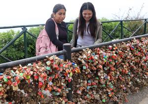 (260115) -- LIMA, 15 enero, 2026 (Xinhua) -- Turistas visitan la zona de cerrojos que dejan los visitantes en el Parque del Amor, en la zona turística del distrito de Miraflores, en Lima, Perú, el 15 de enero de 2026. Perú recibió 4.157.469 visitantes internacionales durante 2025, lo que representó un crecimiento de 4,1 por ciento respecto a 2024 y una recuperación del 78,8 por ciento frente a los niveles previos a la pandemia del coronavirus, informó el jueves el Ministerio de Comercio Exterior y Turismo. (Xinhua/Mariana Bazo) (mb) (da) (ra) (vf)