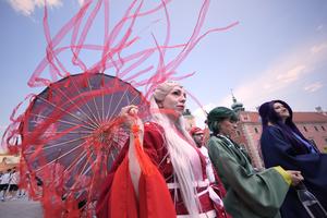 (250622) — VARSOVIA, 22 junio, 2025 (Xinhua) — Imagen del 21 de junio de 2025 de cosplayers vistos durante el evento «Warsaw Cosplay Walk», en la Ciudad Vieja de Varsovia, Polonia. (Xinhua/Jaap Arriens) (oa) (da)