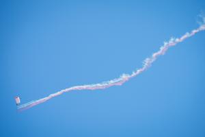 (250816) -- VARSOVIA, 16 agosto, 2025 (Xinhua) -- Imagen del 15 de agosto de 2025 de un paracaidista realizando una presentación durante un desfile militar del Día de las Fuerzas Armadas, en Varsovia, Polonia. Polonia celebró su Día de las Fuerzas Armadas el viernes con un gran desfile a lo largo del río Vístula en Varsovia, con la participación de más de 4.000 soldados. (Xinhua/Jaap Arriens) (jg) (rtg) (ce)