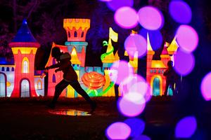 (251026) -- VARSOVIA, 26 octubre, 2025 (Xinhua) -- Imagen del 25 de octubre de 2025 de personas visitando el espectáculo Jardín de Luces en el Jardín Botánico de la Academia Polaca de Ciencias, en las afueras de Varsovia, Polonia. La exposición de este año, titulada "La Bella y la Bestia", ha atraído a muchos residentes y turistas. (Xinhua/Aleksy Witwicki) (oa) (da)