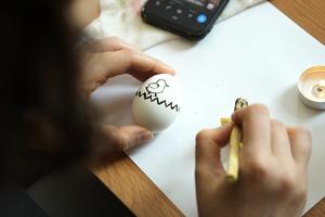 (260329) -- VARSOVIA, 29 marzo, 2026 (Xinhua) -- Imagen del 28 de marzo de 2026 de una mujer decorando un huevo de Pascua durante una feria de Pascua, en Varsovia, Polonia. Diversas artesanías polacas y actividades culturales fueron presentadas en el evento organizado por el Instituto Nacional de Cultura y Patrimonio Rural de Polonia en Varsovia. (Xinhua/Jaap Arriens) (oa) (ah)