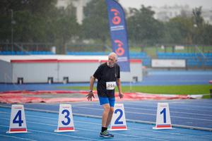 (250915) -- VARSOVIA, 15 septiembre, 2025 (Xinhua) -- Imagen del 14 de septiembre de 2025 de un participante esperando el comienzo de un evento de carrera durante los VII Juegos Olímpicos de la Tercera Edad, en Varsovia, Polonia. Los Juegos Olímpicos de la Tercera Edad de Varsovia, un evento deportivo anual para personas de 60 años en adelante, se lleva a cabo del 14 al 20 de septiembre. (Xinhua/Jaap Arriens) (rtg) (ah) (ce)