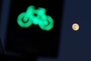 (260201) -- VARSOVIA, 1 febrero, 2026 (Xinhua) -- Imagen del 31 de enero de 2026 de una luna brillante vista junto a un semáforo en verde para bicicletas, en Varsovia, Polonia. (Xinhua/Jaap Arriens) (oa) (da)